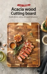This acacia cutting board is beautiful and sturdy. The built‑in drain groove keeps juices off my counter while I carve meats and chop fruits — makes cleanup so much easier!