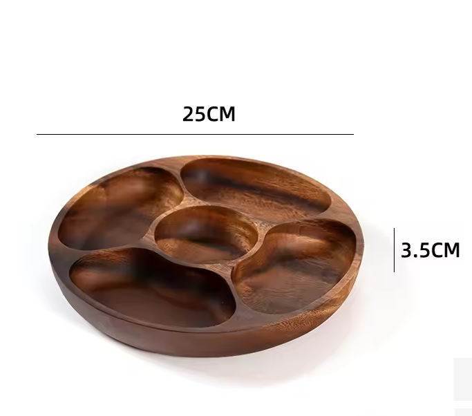 Elevate your dining experience with this elegant wooden serving tray, designed with 5 spacious grids to organize and present your favorite foods. Whether you’re hosting a party, enjoying a family meal, or serving snacks at a gathering, this round tray offers a stylish and practical solution for every occasion.